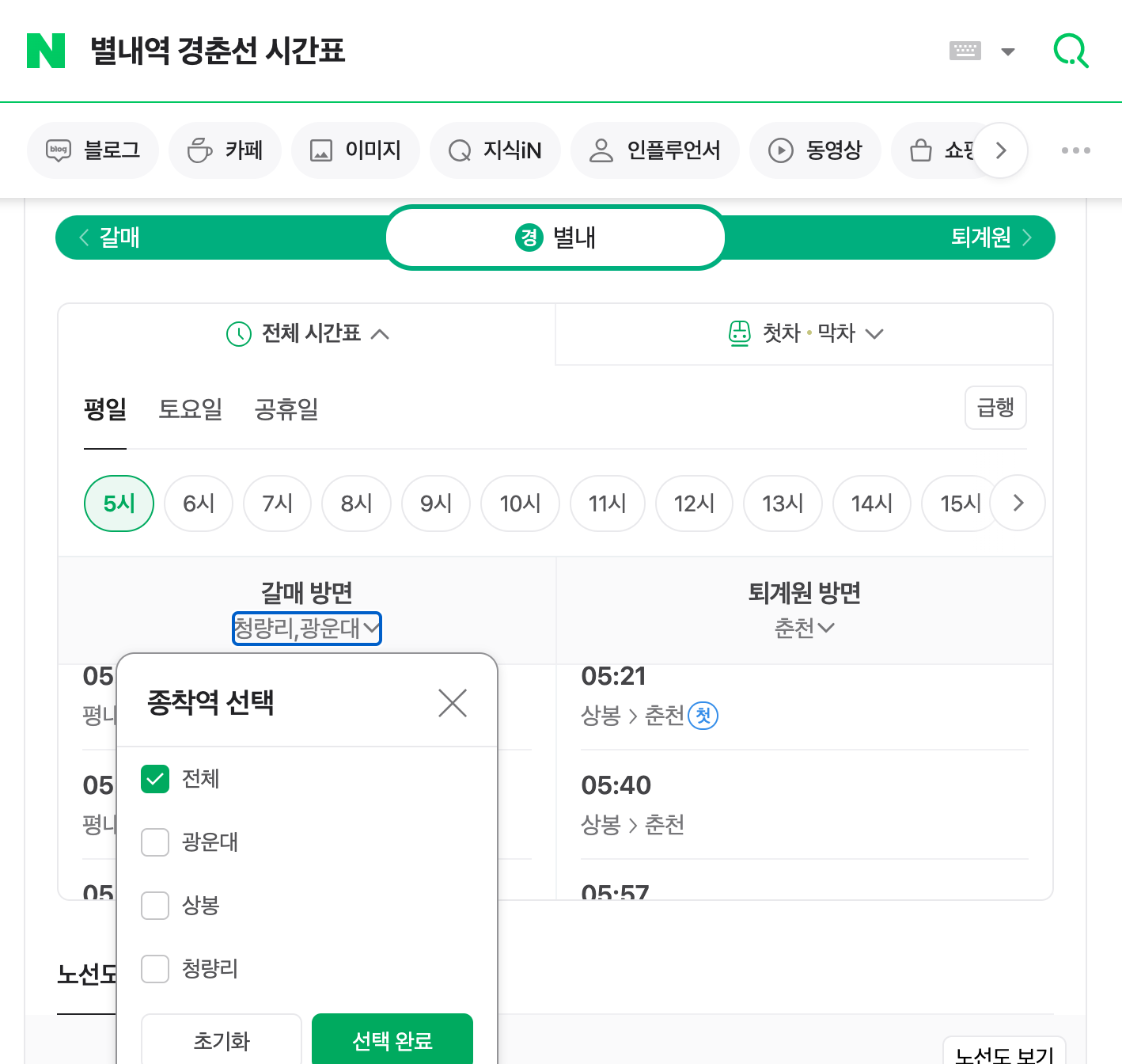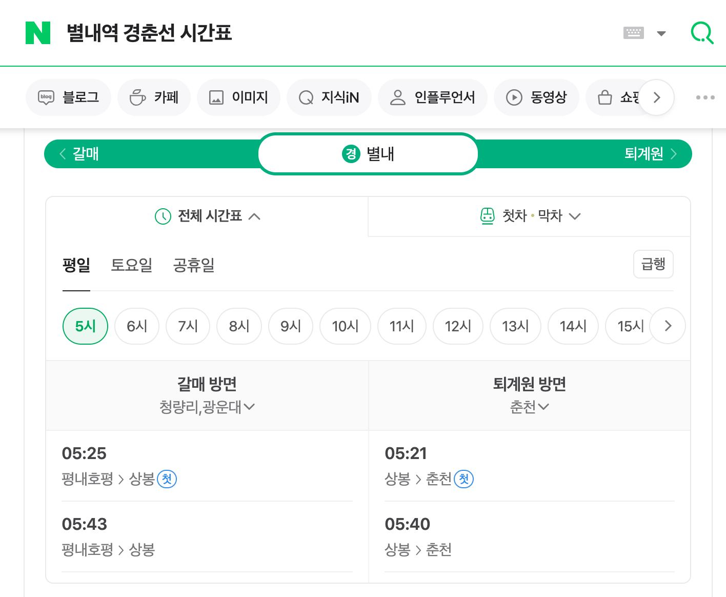 '별내역 경춘선 시간표'의 네이버 검색 결과입니다.